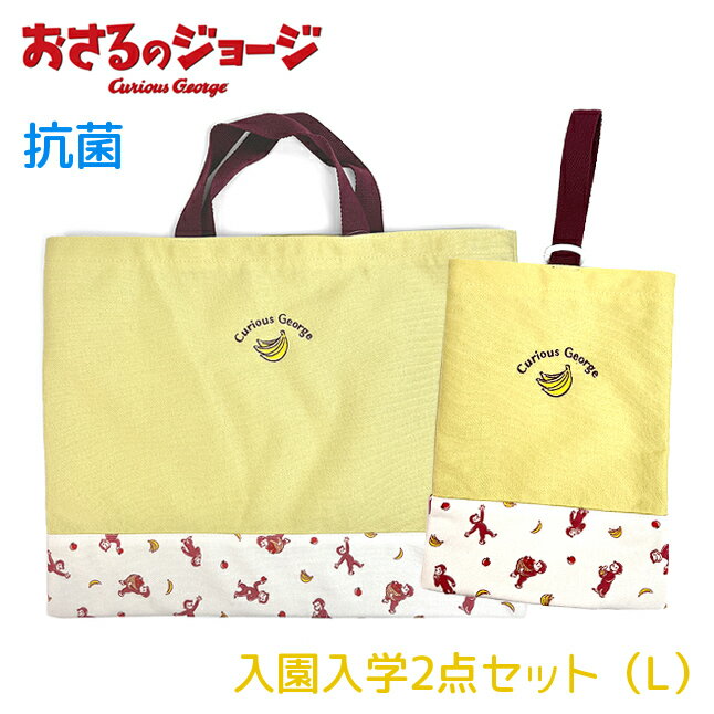入園グッズ セット 女の子 [log-1580-log-2300] おさるのジョージ 入園入学2点セット レッスンバッグ 大きめ Lサイズ シューズケース 抗菌加工内装生地使用 キッズ 子ども 小学生 低学年 幼稚園 保育園 習い事 お稽古 ピアノ 通学 通園 通塾 上履き入れ 上靴入れ 女子 男子