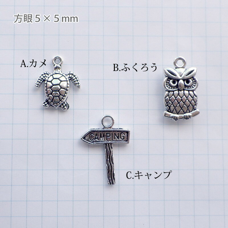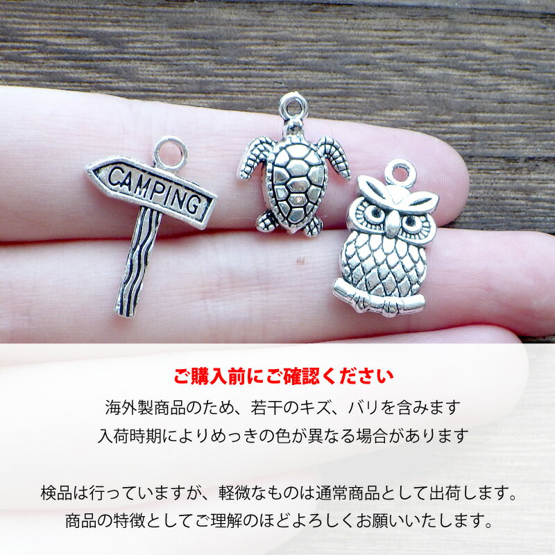大ロット販売[10個]チャーム カメ フクロウ キャンプの看板 1個 シルバー