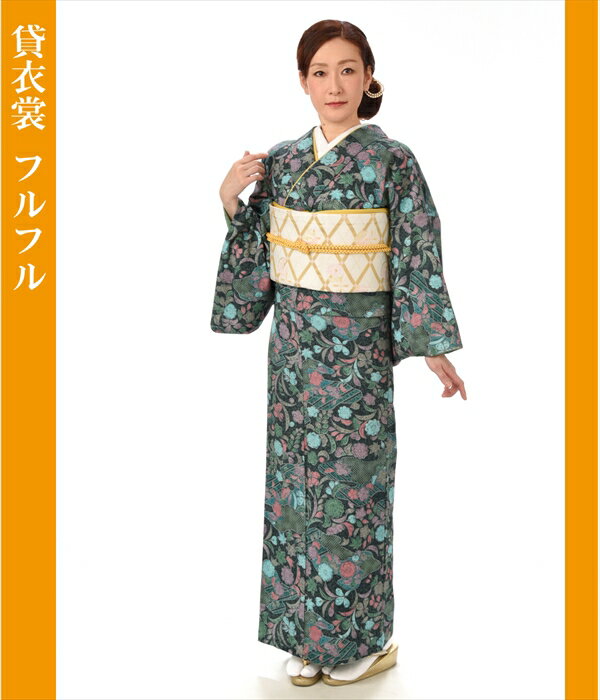 ■0532-39-7660 標準サイズ 身長・・・154cm〜164cm位 洋服サイズ・・・7号〜11号位まで 商品説明 青味を帯びた緑色総身に辻が花調のお花がモダンで 肩ひじを張らないおしゃれな装いが楽しめるお着物です。
